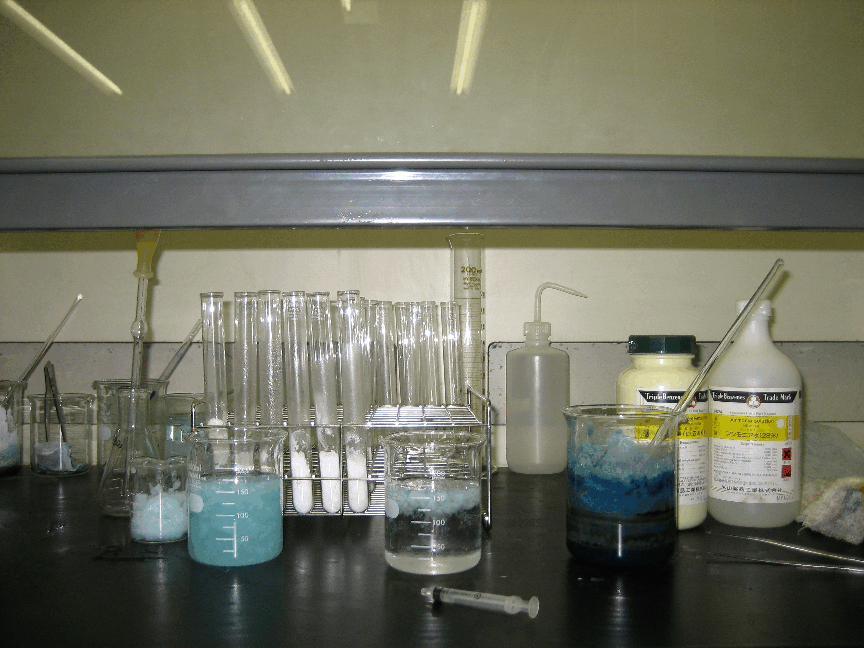 準備物:硫酸銅(U) 水酸化ナトリウム 濃アンモニア水 希硫酸